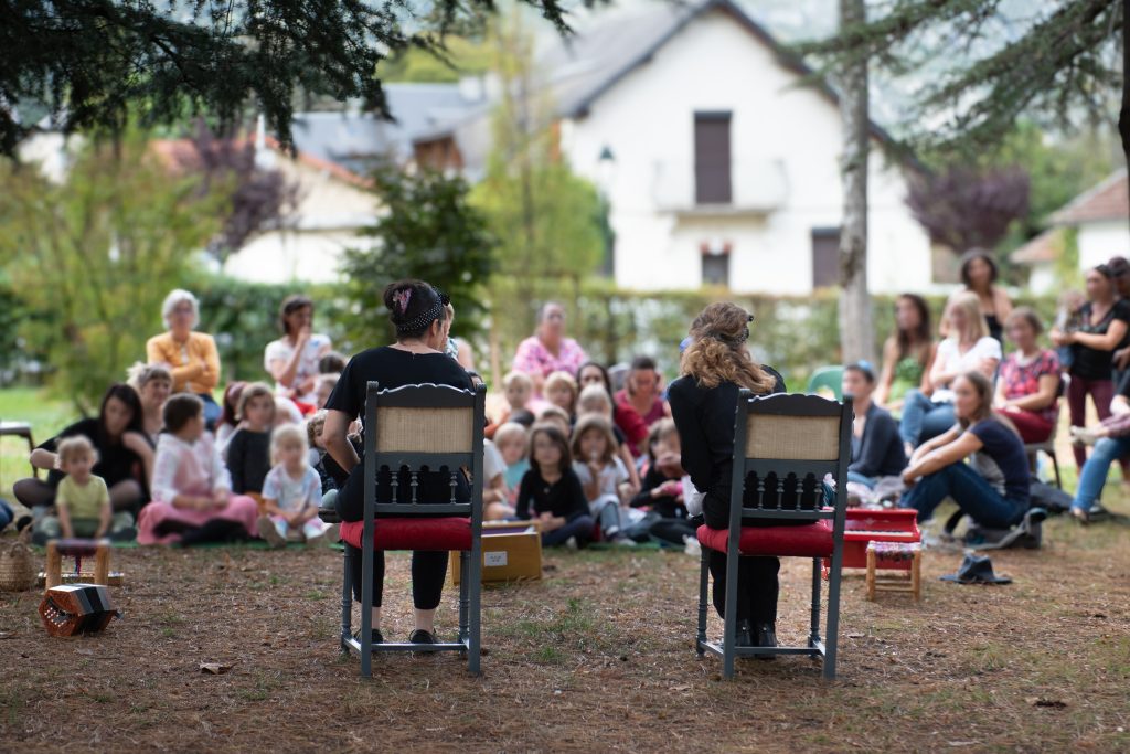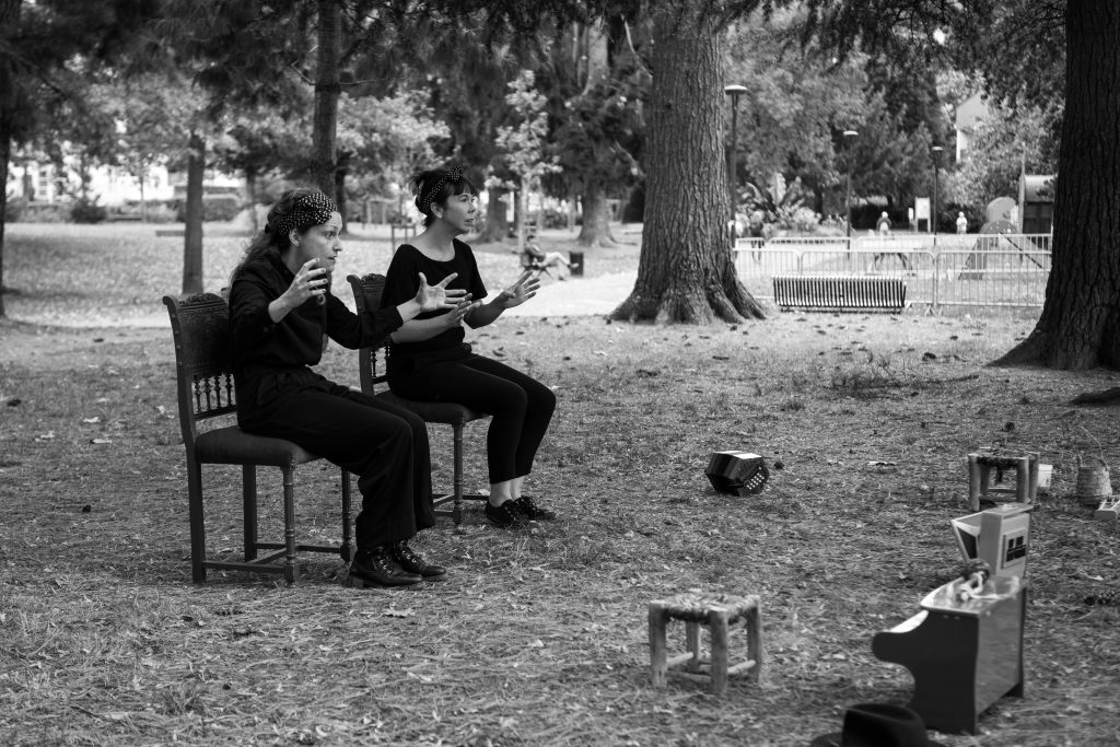 Description du spectacle « Le Chant du Loup » de la Cie Histoire de chanter, avec Carole Gantheil et Laurenne Nocq.