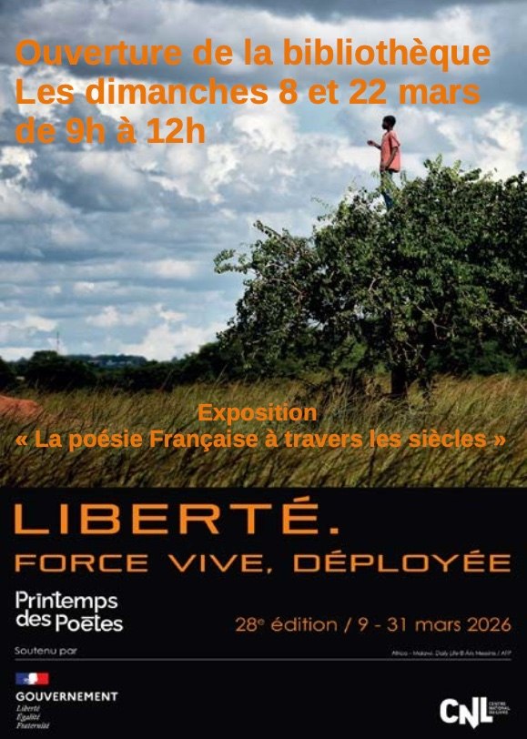 Les dimanches 8 et 22 mars 2026 de 9h à 12h à la bibliothèque.