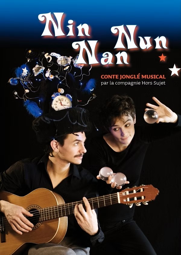 Nin Nan Nun c’est la joyeuse aventure de trois amies, incarnées par des balles de jonglerie, qui se retrouvent projetées dans l’espace et rencontrent Patrack, l’horloger déjanté. Un spectacle poétique, drôle,